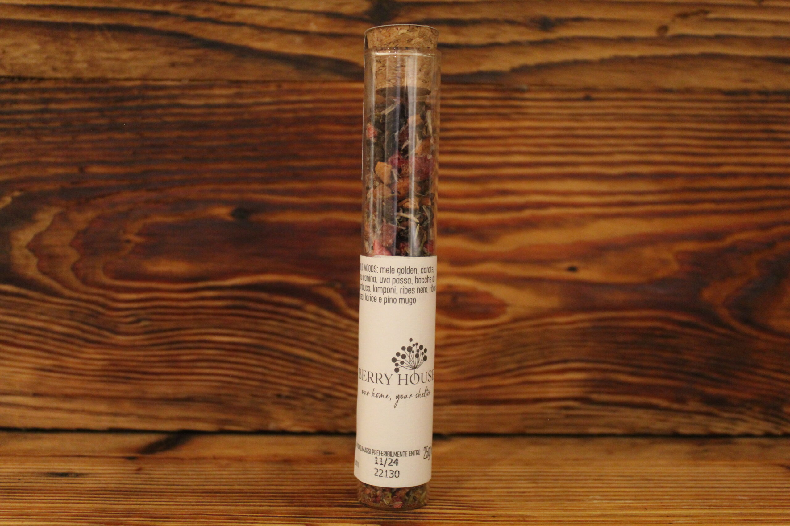 Un infuso che porta con sé l’anima selvaggia dei boschi, con il gusto intenso del ribes nero, del mirtillo rosso e nero, del lampone, arricchito dalle note resinose del larice e del pino mugo. Un sorso che racconta la forza e la bellezza della natura incontaminata. I fiori di ibisco e le bacche di sambuco donano freschezza, mentre il ribes nero, il mirtillo rosso e nero e il lampone creano un gusto fruttato intenso e avvolgente. Le note resinose di larice e pino mugo completano l’infuso con un tocco di montagna autentica.